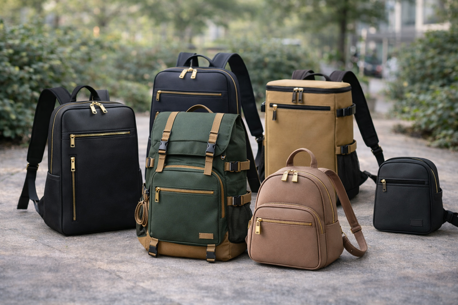容量・ポケット配置・PC収納の有無・背面クッション構造・素材選定などにより、使い心地とデザイン性は大きく変わります。